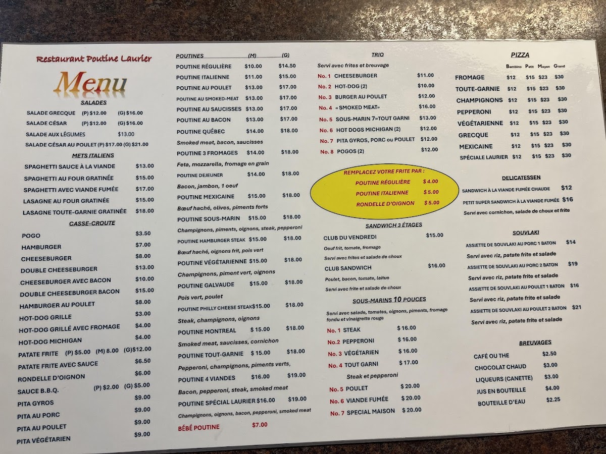 Welcome to Poutine Laurier Restaurant, a hidden gem located at 2100 Laurier Ave E, Montreal, Quebec H2H 1B9. This charming eatery is not just another stop for quick bites; it encapsulates a nostalgic diner vibe that feels right at home in the bustling heart of Montreal. When you enter, you're greeted by a warm atmosphere, friendly staff, and the tantalizing aroma of comfort food wafting through the air.